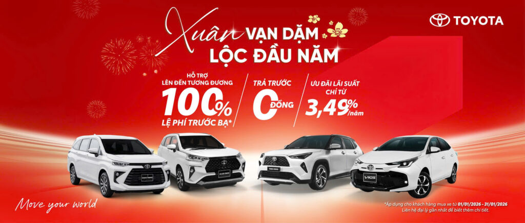 - Toyota Yaris Cross TRẢ GÓP LÊN TỚI 100% GIÁ TRỊ XE + Ưu đãi lãi suất từ 3.49%/năm - Xem ngay: Chi tiết chương trình khuyến mại, hoàn thiện lăn bánh của Toyota Yaris Cross